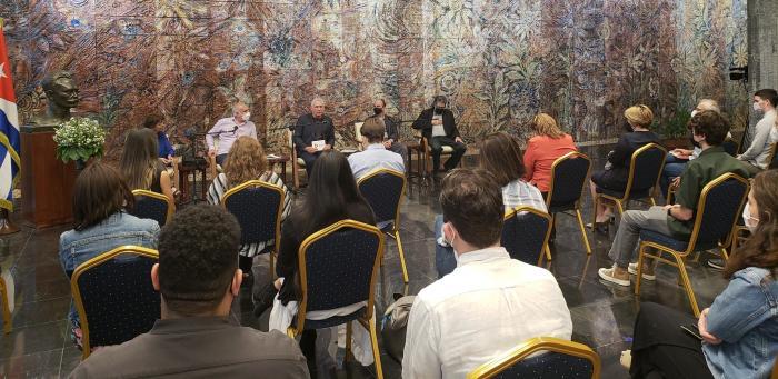 Photo: Presidencia.cu Rest assured that the Cuban Revolution will never surrender, stated Party First Secretary and President of the Republic Miguel Díaz-Canel Bermúdez, addressing progressive journalists, political activists and expert social media influencers participating in the international colloquium for the 130th anniversary of the newspaper Patria, founded by José Martí. Díaz-Canel received the communicators at the Palace of the Revolution, for an informal, sincere meeting, to, as he said, “Thank you for your work in defense of the truth and of Cuba.” Over the past few days, some twenty activists on social media and other multimedia and traditional platforms, from several countries, gathered at the Casa de las Americas, on the occasion of Cuban Press Day, to discuss the challenges of the left in a world where imperial hegemony in the virtual and symbolic field is overwhelming, but must be confronted. For more than an hour, the President described Cuba’s context and current situation for the guests, to then open an exchange during which expressions of solidarity with the island were accompanied by extensive analysis of the struggle in communications, for our people’s culture and for Cuba. Today’s convulsive world, which hegemonic powers seek to dominate, is a world we must change, Díaz-Canel stated, both in the real and the virtual world.